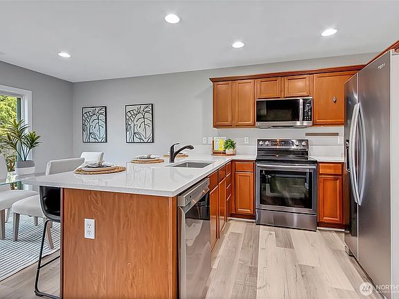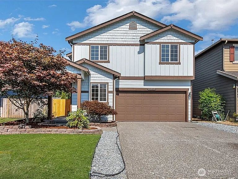 Welcome Home to this spacious, remodeled, 4-bedroom, 2.5-bath home in Maple Valley's sought-after Woodridge neighborhood! Enjoy an open layout with a bright living area, modern kitchen and versatile main level den/office -perfect for working from home. Retreat to a generous primary suite with ensuite bath and walk in closet, 3 generous sized additional bedrooms, main bath and laundry upstairs. Entertain in the private yard. All new flooring, interior paint, doors, millwork and quartz countertops. Just minutes from shopping, restaurants, and parks, with easy access to major commuting routes for your daily travels. Award winning Tahoma Schools. Don't miss your chance to own this ideal blend of comfort and convenience!