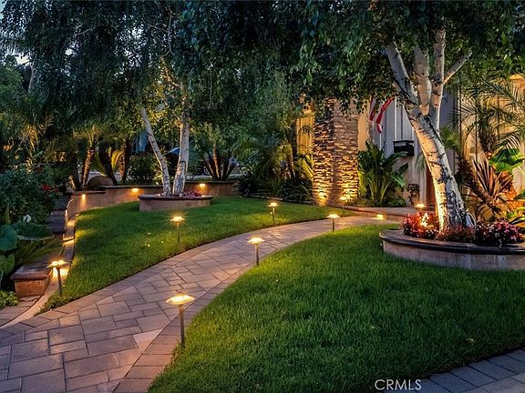 Outside, the beautifully upgraded backyard features a private pool and spa, and a patio hang-out area, all surrounded by lush landscaping and mature trees and shrubs. The two-car garage offers epoxy flooring, storage cabinets, and a washer and dryer. Additional amenities include interior copper plumbing, HVAC system, upgraded 200-amp electrical box, tile metal roof, plastered pool, hardscape lighting, and more.