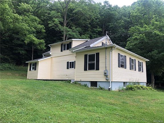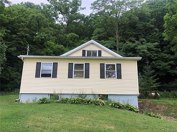 Beautiful location, 3 bedrooms, 2 baths, full basement. Roof, furnace and hot water tank updated in 2007. Just outside of village taxes with city water. Built into the hill with walk out basement, nice yard with a stream on the edge of the property Nice views from yard. Plenty of room in the house and yard to call home!