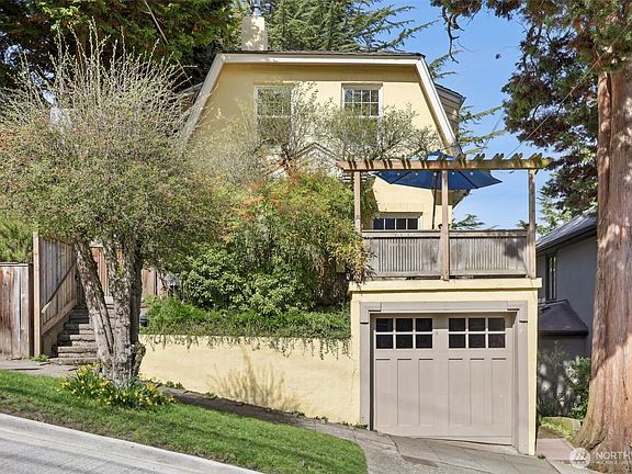 Lovely, turn-key French Stucco in coveted Montlake neighborhood has great curb appeal & abundant charm. Sitting above the street, the story-book approach offers a south-facing deck w/ plenty of sun & dappled shade, perfect for an outdoor meal or quiet read. The living & dining rooms, w/oak floors & gas fireplace have a treehouse feel w/a twist of sophistication. Carrera Marble counters, white subway tile, & stainless appliances give the kitchen timeless beauty. Upper floor offers updated bath and two bedrooms, each w/ walk-in closets & built-ins. The lower level hosts bonus space for media/office/guest quarters and a spacious laundry/storage room. Beautiful garden/patio in back & one car garage. Great opportunity, excellent location.