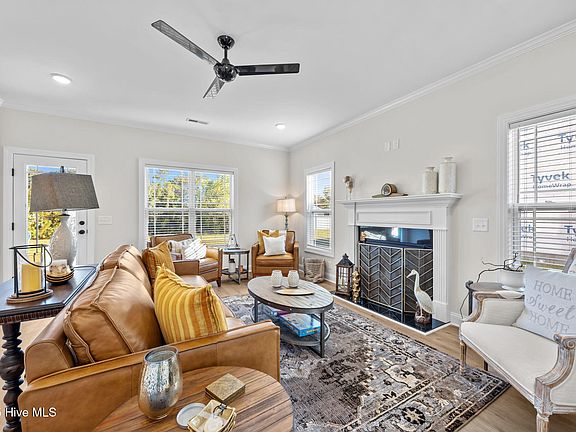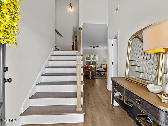 Completed in 2025, this almost new beauty offers quality construction by Rocky Russell Builders! Features include a rocking chair front porch, inviting two story foyer with striking staircase, and open concept floor plan on the main level with lots of natural light, LVP flooring and gold & black hardware & fixture accents throughout! The spacious living room offers a cozy gas fireplace, dining area w/ custom trim work, gorgeous kitchen w/ lots of cabinet & counter space, quartz counters, tile backsplash, stainless steel appliances & room for barstools! The laundry room is on the main level as well w/ a built-in bench area! Half bath on the main level for your guests! Upstairs, you'll find a large primary bedroom w/ a HUGE walk-in closet and an attached bath w/ two sinks, walk-in shower & separate soaking tub! Two guest bedrooms & a guest bath! There is also a bonus room that is a great flex space for an office, playroom, craft room or more! Enjoy your fall evenings on your rear patio overlooking your backyard! 2-car attached garage w/ electric car charging outlet! Tankless water heater! Just minutes from East Carolina University & ECU Health! Don't miss this for just $347,900! **SELLER IS AN NC LICENSED REAL ESTATE BROKER & THE LISTING AGENT**