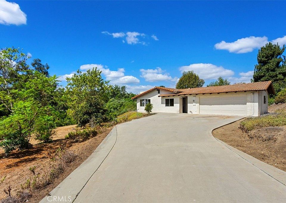 Sweet opportunity on 1.23 usable acres with fruit trees and views! This single-story ranch-style home is located in the heart of East Fallbrook and offers ample space to create your dream home and mini ranch for dogs or farm animals. It's a perfect opportunity for investors too! This home features an open floor plan, 3 bedrooms, 2 bathrooms, a fireplace, and a patio deck, with the possibility to add an ADU. The spacious yard may provide plenty of room for expansion.