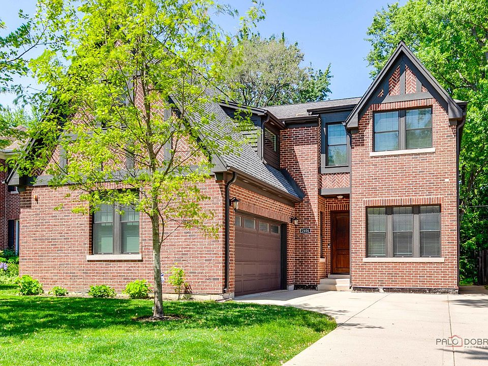 Discover this elegant,well maintained home in sought after District 28. Built in 2013 and offering timeless curb appeal with brick exterior. Gorgeous hardwood floors throughout 1st & 2nd levels, coffered ceiling in the family room & main level office. Family room features a sleek yet cozy fireplace & the first floor is rounded out with a powder room & formal dining room with unique tray ceiling. The kitchen impresses with Wolf & Sub-Zero appliances including wine/beverage fridge & butler's pantry & cool, modern color scheme with recessed lighting. Eating area with bench & table space overlooks the beautifully landscaped yard & patio which is perfect for outdoor entertaining. Fully fenced back yard.5 bedrooms, 3 bathrooms upstairs.Master suite boasts luxurious bathroom, walk in closet, and bayed window seating area. There is one additional en-suite bedroom and 3 more bedrooms with shared, main bath on the 2nd floor. Full, finished basement has plush carpet, recessed lighting, & a fireplace with a full bathroom and guest bedroom. Garage has its own separate heater.