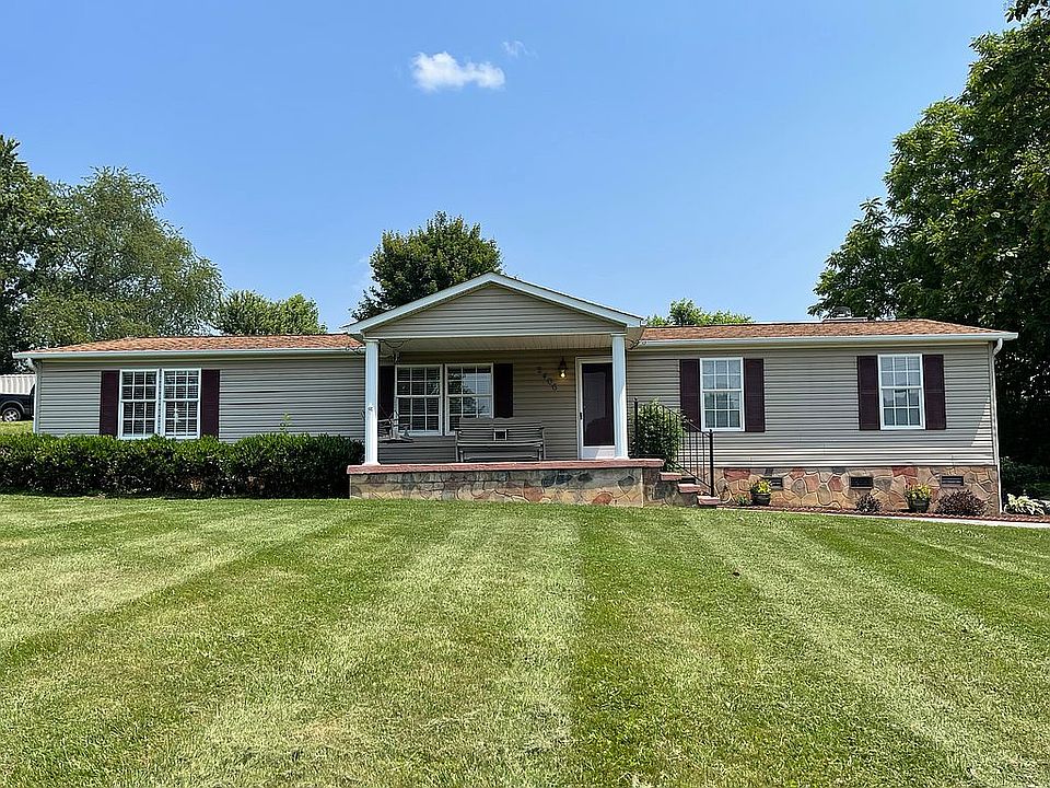 One level, low maintenance modular home, approx. 1792 sf on approx. 3/4 acre lot. Convenient location close to Woodland Elementary School, JCMCH, Franklin Woods Hospital, Med Tech Corridor, VA, and ETSU. New roof installed 5 years ago. New heat pump installed 6 months ago. New dishwasher installed 1 year ago. Large kitchen island with bar/counter. Wood burning fireplace and French doors in den. Front living room. Large kitchen/dining room combination. Wood rear deck. Covered front porch. Built in pantry in laundry/mud room. Garage has built in cabinets/storage. Storage building not included.