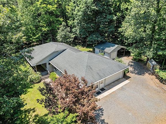 This is the GREEN THUMB's dream home! Name a fruit - it's probably growing here (see attached fruit map). Azaleas abound in the front of the property. Oh, and there's a beautiful home to live in too - 3BR/2.5BA ranch on a quiet street, built with accessibility in mind. Enter the front door off a covered porch to a large great room and open kitchen, perfect for entertaining. The side door opens to a flexible room (once used as an art studio), then a small sunroom. Large laundry and 1/2 bath. You can enjoy a morning coffee or evening beverage on the back patio or covered front porch. 2-car garage has plenty of storage space and comes with a generator, with transfer switch installed. Need room for your tools (gardening or otherwise) - the shed has plenty of room. 23 minutes to the airport and downtown Greensboro. Northern schools.