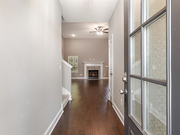 Step inside to an open-concept living area with hardwood floors, a gas fireplace, and a stunning kitchen that’s perfect for entertaining. Enjoy granite countertops, a large island with bar seating, tile accents, and plenty of cabinet space. The primary suite offers a peaceful retreat with a tray ceiling, walk-in closet, and a luxurious soaking tub. Each bedroom includes spacious closets, providing excellent storage throughout. Outside, relax or entertain on the covered patio overlooking a beautifully landscaped backyard with privacy trees. Whether you're hosting guests or enjoying a quiet evening, this space offers the perfect backdrop. Barfield Downs features sidewalk-lined streets, ideal for evening strolls or morning jogs. This home is truly move-in ready, well cared for, thoughtfully designed, and ready to welcome you home.