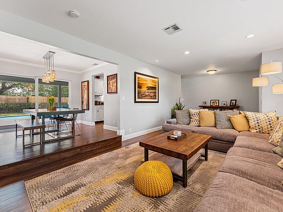 Call Amanda 561-440-2222 to arrange a showing. Nestled away on a quiet street just steps from the intracoastal and minutes from amazing beaches, shopping and restaurants, this beautifully renovated turnkey home has it all. It comprises 3-bedrooms and 2-bathrooms, has two living areas and sits on an over 1/4 acre lot. Solid CBS construction with impact doors and windows, and an oversized half-circle paver driveway. The double door entry opens to a wide foyer and one of two large living areas. There are beautiful engineered wood floors throughout. The updated galley kitchen has lots of countertop work space and a party pass through to the poolside patio. The huge screened patio offers plenty of sitting areas and looks out onto the large backyard and the pool.