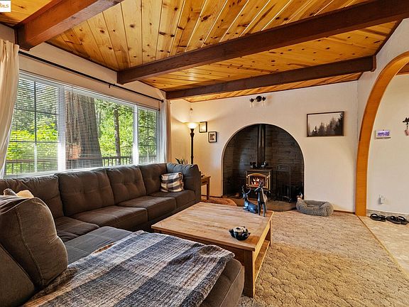 Charming 4-bed, 2-bath two-story cabin nestled in the trees on a tranquil street in Mi Wuk Village. Features warm knotty pine ceilings, rustic beams, a cozy freestanding wood stove, and 3 mini-split units for efficient heating and cooling. Recent upgrades include a new French drain, retaining wall, and electrical panel. Ideal for full-time living or a vacation getaway with year-round recreation nearby, including skiing and snow play at Dodge Ridge and summer boating and hiking at Pinecrest Lake.