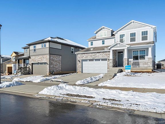You will love this stunning two story Castlewood plan with 4-bedroom, 2.5 bathroom home spanning 2625 square feet finished area. The spacious kitchen boasts linen-colored cabinets, beautiful daphne white marble mosaic backsplash, and stunning golden gate quartz kitchen countertop. The luxurious bishops ridge light house vinyl flooring complements the spacious entry to the main great room, dining and kitchen areas. Enjoy the oversize covered front porch during those beautiful summer days. Murphy Creek is minutes away from DIA and Downtown Denver. Your dream home awaits!
