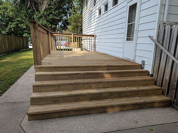 LARGE four-bedroom with walk-in closets (19x12; 20x12;10x13; & 10x13) on 1/4th-acre lot in NE Ft. Dodge. Close to daycare providers, middle school and high school. Total living space approx 2,160, plus 1,020 sq ft. finished basement (400 finished). Two large enclosed porches. Two full baths; main floor laundry. Large kitchen (12 x 14) with counter top seating that includes stove, frig, dishwasher, microwave, and garbage disposal AND a walk-in pantry! New carpet, wood flooring, and paint throughout. Full walk-up attic for storage! Central air. Wired for ADT. Oversized garage with openers and floor drain.