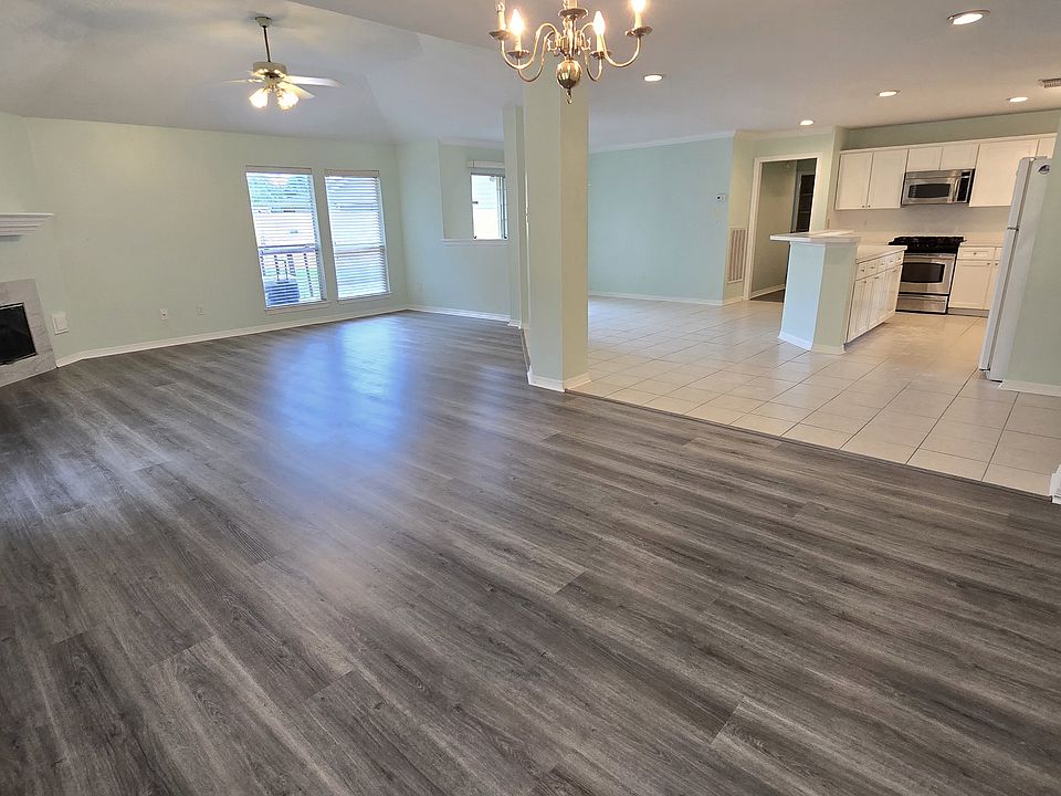 This beautifully updated home features brand-new paint and stylish new flooring throughout, offering a fresh and modern feel. Massive open living Area and Fireplace. Master suite featurews large bedroom area. Refrigerator, washer and dryer available. Conveniently located near school , super market and freeway. you'll enjoy easy access to shopping, dining, public transportation, and more. Renters responsible for all utility like gas, electric, water, trash