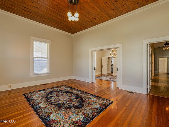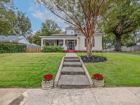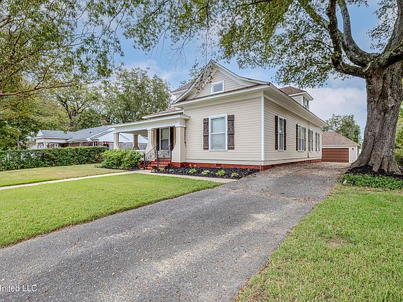 Check out the new paint job! Seller also offering 1-year warranty! Welcome to the ''Dr. Bailey'' house, a beautifully preserved 1900's home located in the heart of Byhalia's historic district. This residence combines timeless charm with modern updates, featuring original hardwood floors, 12-foot ceilings and a touch of original light fixtures. The kitchen and bathrooms have been tastefully updated and the upstairs bedroom enjoys its own private en suite. The home offers additional space ideal for an office or study, and abundant closet storage throughout. Enjoy mornings on the charming wrap-around front porch, or relax on the side deck. Additional highlights include an underground sprinkler system, detached two-car garage with an attached shop, a shed, carport, and a gated drive-thru driveway. Just a short walk from downtown shops and restaurants!
