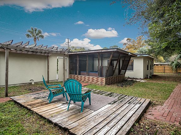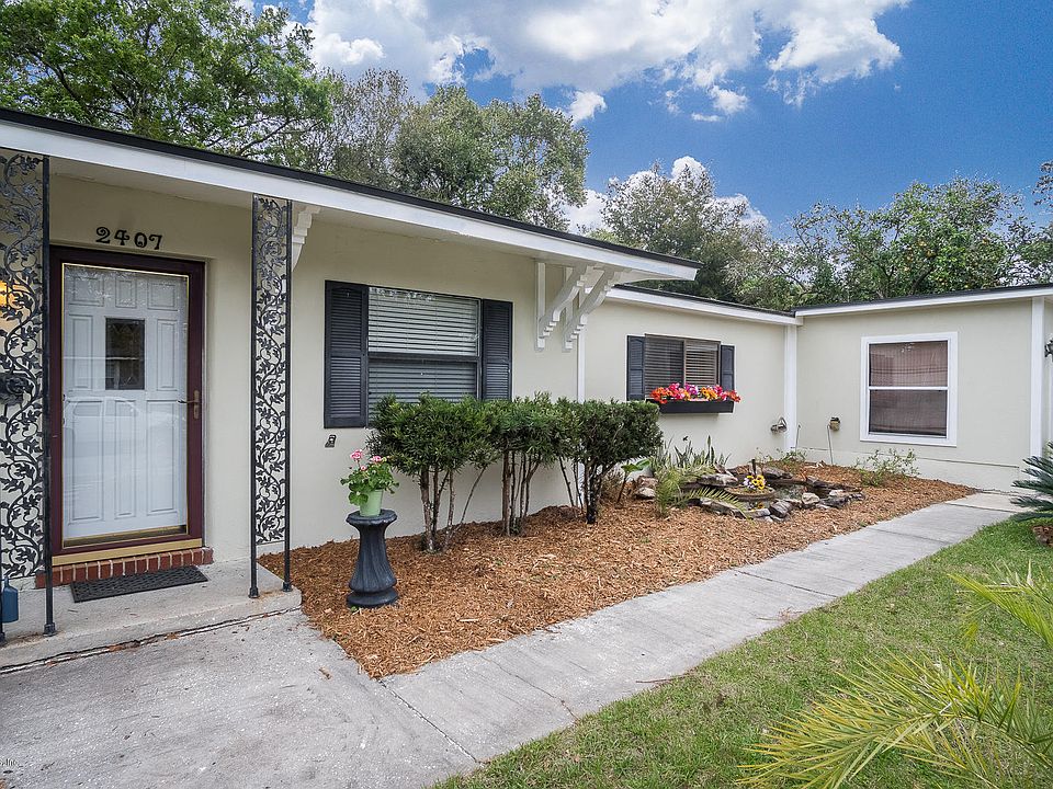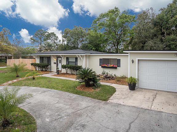 Great Lakewood bungalow with lots of great features! This charming home will really surprise you - Large eat-in kitchen, with long island and tons of cabinets. Attached 2 car garage with extra storage and workspace. Enjoy low maintenance tile floors throughout, new roof and concrete construction! The fenced-in back yard offers a screened patio - with hot tub and side yard big enough for a pool. Lots of windows make every room light and bright. The owner's bedroom has additional closet space. Built-in desks and storage throughout. Half bath in the kitchen. Great location - Close to area shopping and dining. Just minutes to southside office parks, downtown, Mandarin and San Marco. Enjoy your own fresh squeezed grapefruit juice from large tree by the garage. HOME WARRANTY INCLUDED