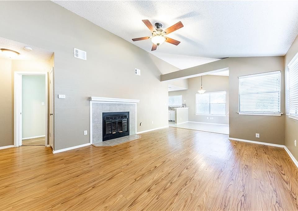 Darling home in great neighborhood close to school, pool, park, hike and bike, great amenities. Updated with laminate flooring, interior paint, no carpet!! Washer/Dryer/Fridge included! Kitchen has tile flooring, tile backsplash, recent counter tops, microwave, pantry, looking out over backyard. Sliding glass door to peaceful deck and yard.