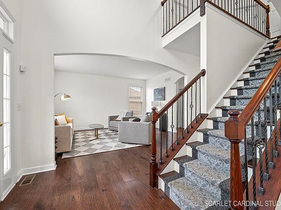 Welcome Home! Nestled in the sought-after Brookside subdivision, this gorgeous property is sure to captivate you from the moment you step inside. Boasting 4 bedrooms, 3 1/2 bathrooms, and 2,689 sq. ft. above grade (plus a stunning finished basement), this home offers both space and sophistication. Every detail has been thoughtfully updated, including some fresh paint, modern fixtures, and newer blinds with room-darkening shades for added comfort. The gourmet kitchen is a dream, featuring white glazed cabinets, a center island, subway tile backsplash, beautiful granite countertops, stainless steel appliances, a walk-in pantry, and a butler's pantry with glass-paneled cabinets-perfect for your coffee bar. The open-concept design flows seamlessly into the family room, complete with a cozy fireplace, creating a warm and inviting space for entertaining. The first floor also boasts a dedicated home office, ideal for remote work, and a spacious mud/laundry room with ample cabinetry and a convenient utility sink. Newer vinyl plank flooring on the main level and plush carpet upstairs add to the home's modern appeal. The primary suite is a luxurious retreat with a tray ceiling, walk-in closet, and a completely remodeled spa-like bathroom featuring stunning tile work and upscale fixtures. The second floor offers additional bedrooms with updated flooring and thoughtful design throughout. The finished basement is a true extension of the living space, featuring a theater area, mini fridge, dry bar, and a custom full bathroom. A unique hidden entrance behind the bookshelves leads to a versatile workroom/hobby room or workout space. The exterior is just as impressive, with updated landscaping, a newer deck, and an attached gas grill-perfect for outdoor gatherings. The heated three-car garage offers convenience year-round. Located in the highly acclaimed District #202 schools, this home is the perfect blend of elegance, comfort, and functionality. Don't miss the opportunity to make it yours!