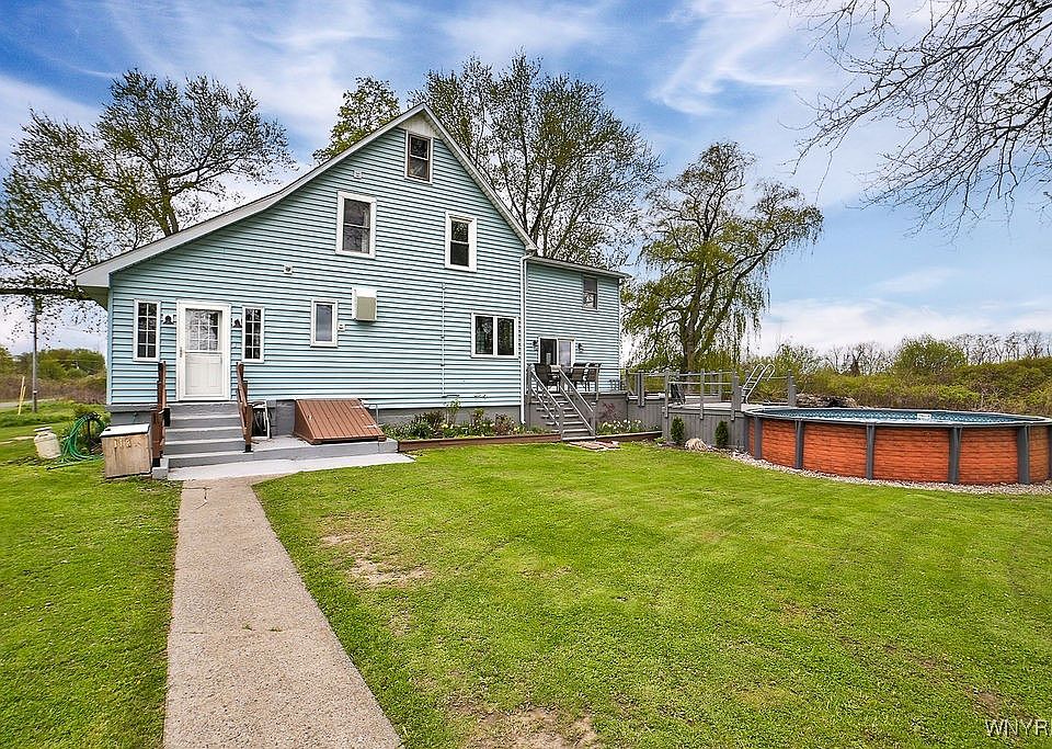 Welcome to this wonderful rustic paradise secluded from the road! This inviting home features spacious rooms throughout and a versatile floor plan. The country kitchen has slate flooring, pantry, island, an abundance of cabinetry, pot rack and is equipped with a gas free standing range, dishwasher, refrigerator, disposal and range-hood exhaust fan. The kitchen eating area has sliding doors to a deck, heated above ground pool, and overlooks the expansive yard with a detached 24' x 28' garage and a 28' x 30' pole barn with wood-burning stove. The family room features a gas fireplace and bay window. This could also be a formal dining room. The living room has surround sound, recessed lighting and French doors to deck. The first floor office could be a 5th bedroom if needed. There is a full bath on the first floor. The second floor consists of four good-sized bedrooms and full bath. Full bath has luxury vinyl flooring and tub with tile surround. Second floor laundry includes the washer and dryer. Natural woodwork. Central air. Maintenance free exterior. Basement has second egress to yard. Oversized mud room has luxury vinyl flooring and includes the refrigerator. 150 amp electric. Hardwood flooring under living room and primary bedroom carpeting. Most windows updated. Pull down stairs to attic storage. Gutter guards. This property is truly special and ready for you to enjoy! Updates: Pool heater '23. Hot water heater '16. Roof '10.