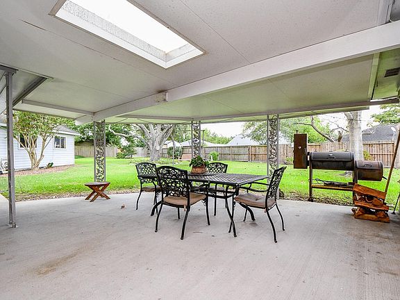 to the fabulous spacious covered patio w/skylights*wrought iron table with chairs can remain plus outdoor TV. Oversize lot, lot of landscaping and trees. Wrought iron gateway, oversize garage w/golf cart door! This property is totally fenced in and backs to one story homes!