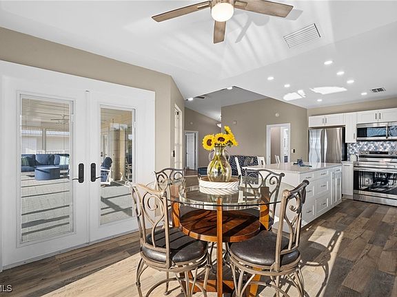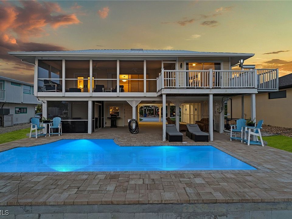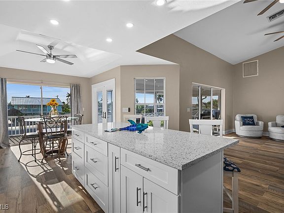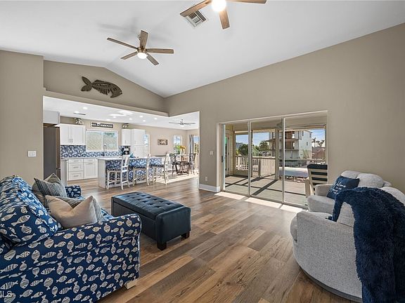Whimsical Island Living in St. James City! Dive into your own paradise with a brand-new custom pool just completed —complete with sun shelf, LED bubblers, glow lighting, and a saltwater system. Add direct Gulf access and a 8K boat lift with canopy and composite captains walk dock - adventure by water minutes away. From your dock it’s a quick ride to the open bayfront, where the sandy beaches of Sanibel, Captiva, Cayo Costa, and Boca Grande await, along with the world-famous fishing grounds of Pine Island Sound. Fresh landscaping throughout and maintenance as well. Inside, vaulted ceilings and sunlit spaces create a breezy, open feel. The remodeled kitchen in 2024 sparkles with quartz countertops, white raised-panel cabinets, center island and stainless appliances. Sliders from the great room open to a spacious screened lanai, while an open-air balcony off the kitchen is perfect for morning coffee or sunset cocktails. The primary suite is a private retreat with lanai access, two closets, including a walk-in, and a spa-like bath. Guests can enjoy their own wing with a pocket slider for added privacy. Nearly every room whispers water views, reminding you that the Gulf is never far. On the lower level, a second screened lanai, shaded gathering space, and two flexible storage rooms offer endless options—outdoor kitchen, game area, workshop, or guest hideaway. There’s also covered parking below the home with plenty of space for your golf cart—an essential for enjoying the golf cart–friendly streets of St. James City. Recent updates including a new roof (2023), Pergo flooring, and seawall reinforcement mean peace of mind while you simply enjoy island life. From sun-up to sun-down, this home blends updates, whimsy, and waterfront fun—an island escape made for living.