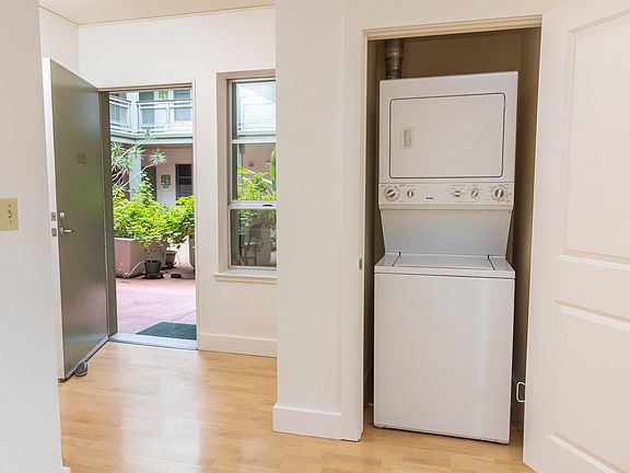 NEW LISTING! This charming studio apartment is a beacon of comfort and style, perfect for those seeking a modern and efficient living space. Nestled in a prime & vibrant location, within walking distance of both Uptown and Downtown Oakland, conveniently located near a myriad of shops and restaurants with quick access to the BART station. This studio apartment effortlessly combines modern amenities with thoughtful design creating a harmonious living space. Key Features: This studio boasts a well-designed layout with a seamless flow, maximizing both space and functionality. Enjoy the convenience of a full bath. Huge patio. Classic beautiful flooring. Freshly Painted walls. Natural Light: Bask in the glow of abundant natural light streaming through numerous windows, creating an inviting and airy atmosphere. Parking: Comes with one secure garage parking space and includes bike storage closet in the garage for residents. Courtyard: This apartment opens up to a most wonderful courtyard with lively plants and greenery. Roof: Beautiful and spacious rooftop to see city views. Excellent space for BBQs and relaxing. Appliances: Gas stove, microwave, dishwasher, refrigerator and in unit washer/dryer hookup. Don't miss the opportunity to make this residence your own!