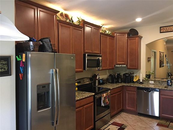 Absolutely perfect town home in Meadow Point with easy access to I-75 and Tampa. Granite counters in kitchen and bathrooms, crown moldings , 42" cabinets,stainless appliances, screened Lanai with conservation view. Includes Washer/Dryer and Refrigerator. Move in ready.