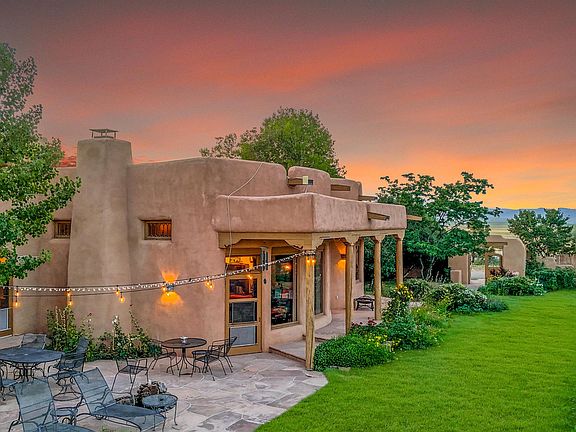 Welcome to a truly exceptional Northern New Mexico retreat—110 acres of serene beauty and luxurious living. This remarkable property features a stunning 4-bedroom, 3-bath primary residence once showcased in Enchanted Homes magazine, a testament to its timeless design, high-level craftsmanship, and one-of-a-kind charm. Inside, you’ll find hand-carved beams, a magnificent stone fireplace, and warm, inviting spaces designed for comfort and elegance. The chef’s kitchen is a dream for culinary enthusiasts, while multiple private patios and lush, thoughtfully landscaped gardens create a true oasis in the desert—perfect for quiet mornings, lively gatherings, and starlit evenings. Conveniently located just 10 quick minutes west of the Taos Regional Airport, this extraordinary estate is as functional as it is beautiful. A grid-tied solar system, private well, and high-speed fiber optic internet ensure modern sustainability and convenience. The land includes well-appointed outbuildings: storage, tack room, hay barn, and a 3-bedroom, 2-bath manufactured caretaker’s home—ideal for guests, a ranch manager, or extended family. Take in breathtaking 360-degree views from every angle and enjoy the option for an elk hunting license, adding unique appeal for outdoor enthusiasts. Whether you dream of tending gardens, riding horses, or simply soaking up the peace and privacy under expansive skies, this property invites you to experience the very best of refined country living. If you’ve been searching for a luxurious private sanctuary that must be seen to be truly appreciated, this is the one.