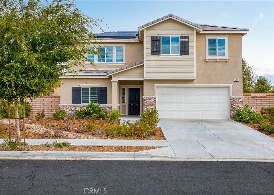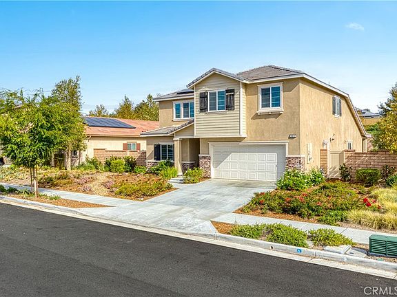 Experience luxury living at 24078 Kerrigan Dr, a beautifully designed, nearly-new home situated within Menifee's esteemed Audie Murphy Ranch community, complete with a FULLY PAID-OFF SOLAR SYSTEM. Built in 2022, this modern residence features 5 spacious bedrooms, 3 baths, and approximately 2,537 sqft of elegant living space and 7,122 Sqft lot size. A ground-floor suite and master suite offers convenience and privacy, while upstairs a bonus room and three additional bedrooms provide flexibility for guests, home office or family needs.
