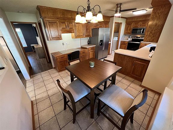 2408 Apache Pass is situated in the central area of Altus, offering a charming view of a community park. It is conveniently located just a few minutes away from AAFB, as well as various shopping and dining options. This recently updated home boasts two distinct living spaces, including a front living room with a spacious bay window and a cozy second living area featuring a gas fireplace. The kitchen is equipped with ample cabinet space and modern stainless steel appliances. The primary bedroom includes an en-suite bathroom, while all bedrooms are generously sized. The backyard is expansive and features a covered large patio, along with a guest cottage that has its own bathroom and storm shelter. This property is truly a must-see!