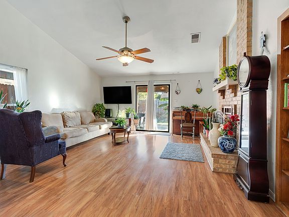 Seated just minutes away from General Motors, Epic Waters, Six Flags Over Texas, AT&T Stadium, Globe Life Field, Grand Prairie Premium Outlets, and much more! This lovely 3 bed 2 bath home is ready for a new owner. The floorplan features a spacious kitchen with stainless steel appliances, a pass through window connecting the kitchen to the sizeable family room, with wood burning fireplace. This home is sure to make entertaining a wonderful experience. Large master with huge window for natural light, an oversized en-suite bath with large vanity and knee space, stand alone shower, and separate garden tub. The backyard with extended covered patio is a peaceful space for tranquil mornings and evenings to relax and unwind. Garage is currently being used as a bedroom but still has working garage door and can easily be transformed to its previous state as a 2 car garage if the new homeowner chooses. The home is equipped with leased solar panels designed to lower monthly energy expenses and would require assumption of the current solar panel lease by new homeowner.