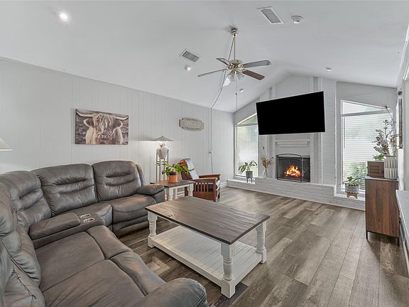 Welcome to this beautifully updated two-story home, offering the perfect blend of comfort and style. Recent upgrades include a new large A/C unit with fully redone ductwork, a reimagined kitchen layout, a renovated downstairs living space, and an updated upstairs bathroom. Soaring ceilings frame the spacious living room, anchored by a spectacular fireplace, while large windows invite in natural light. Upstairs, you’ll find four bedrooms and two full baths, providing ample space for family and guests. The downstairs features a versatile room that can serve as a mother-in-law suite or game room, complete with its own full bath. A half bath and bar area add convenience for entertaining. Set on a generous lot, the backyard is your private retreat with an in-ground pool surrounded by lush landscaping—perfect for relaxing or beating the Texas summer heat.