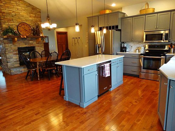 Your access to tranquil Eagle Pointe Lake is here with this executive 4 bedroom, 3 bath home! A flowing open floor plan features volume & vaulted ceilings, two-way stone fireplace with hand-crafted pine slab mantel, maple floors and doors. Updated kitchen makes culinary arts fun! Handsome gray cabinetry, quartz countertops with apron farm sink, glass mosaic backsplash and SS appliances. Exposed LL with walk-out basement, full bath, 4th bedroom, office/media room, family room with 2nd gas FP & 9' ceilings.Lower level kitchenette for those game day parties. Master suite is separated for privacy with sumptuous bath with dual vanities with granite counters and tower storage, soaking WP tub, separate shower and spacious walk-in closet. Main level mud room has built-in lockers, window seating, utility sink and laundry. LL oversized patio door opens to the 16 x 18 concrete patio this is flanked by 8 ft tapered retaining walls that provide nice outdoor privacy. UHP Home Warranty included. Lovely yard with 6 zone U/S that are not hooked-up. Plus screened Hartland gazebo with electrical hookups for bug-free evenings. Subdivision lot owners have shared water access via a common lot that includes a playground, sand beach and use of Eagle Pointe Lake. (7 acre, man-made, no wake lake) Annual HOA fee is $100. If you're raising more than just your standard of living you'll appreciate your access to Eagle Pointe Lake to canoe, kayak or picnic on the sand beach!