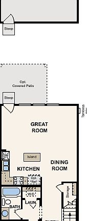 The main floor of the welcoming San Angelo plan offers an airy, open layout, showcasing a great room, a dining area, and a spacious kitchen with a center island. This level also boasts a convenient bedroom and a full bath. Upstairs, the spacious owner's suite offers a walk-in closet and a private bath with a walk-in shower. A third bedroom and a full bath round out this attractive floor plan. Options may include: Covered patio