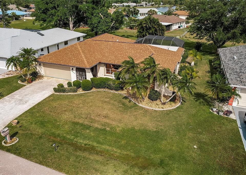 Need room for your large or extended family and friends? This 3 bedroom, 2 and half bath pool home is what you have been looking for. Located in the popular deed restricted community of Deep Creek you have an expansive view of beautiful greenbelt. Add a little TLC and your personal touches, and you will have your dream home! There’s plenty of room for family and friends with over 2200 square feet of living space, great room, dining room, family room, and spacious kitchen. This home offers bright and open floor plan with soaring vaulted ceilings with plant shelves to show off your collectibles, and tile in all the main living areas. Kitchen boasts warm wood cabinetry, large wall pantry, casual dining area with another wall pantry, and breakfast bar that opens to the family room for easy entertaining. The generous master suite will be your private retreat with walk in closet, bump out wall for extra living space, and private en suite bath with his and hers sinks, make up vanity, soaking tub, and shower. Lots of room and ample storage with walk in closets in both the master and 2nd bedroom. Dedicated laundry room is equipped with washer & dyer, overhead cabinets, and counter top. Other key features include new roof in 2020, new ridge caps in 2023, new duct work in 2015, storm shutters, and public water and sewer service providing convenience and reliability. You will spend most of your leisure time relaxing on your screened lanai or lazing in your pool overlooking the park like, private back yard with panoramic view of greenbelt. And half bath has direct access to the pool area. So, no more “puddles” in your home! Nice curb appeal with landscape curbing and decorative rock, mature palms and flowering shrubs, and screened front entry. Deep Creek is a deed restricted community with lakes, canals, and greenbelts throughout the community, park, and playground. And Deep Creek golf course nearby! Proximity to waterways, local beaches, dining, shopping, and golf courses makes this property ideal for the Florida lifestyle. Also, easy access to public parks with bike and walking trails and picnic areas, and boat ramps providing access to many waterways, beautiful Charlotte Harbor, the Peace and Myakka Rivers, and the Gulf of Mexico. And easy access to Interstate 75 with Fort Myers and Naples to the South and Sarasota and Tampa to the North. Quiet community, yet all conveniences and amenities nearby. The possibilities with this home are endless. Great home in a great neighborhood.