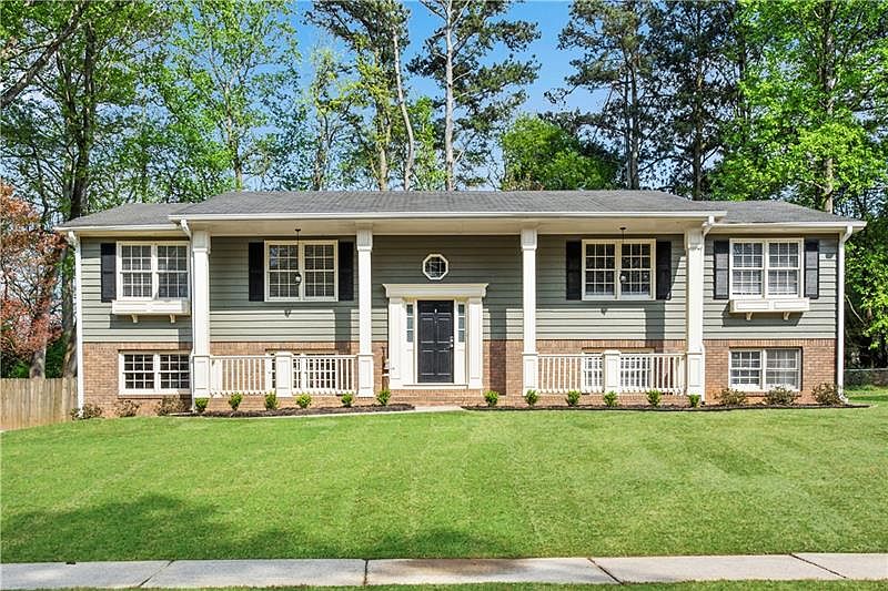 Gorgeous renovated home in fabulous East Cobb location! New sod in front yard! Open concept throughout w/ all new light colored flooring & interior paint! Living room features vaulted beamed ceilings & painted fireplace w/ custom trim. Stunning kitchen has new white shaker cabinets, granite counter tops & SS appliances w/ floating range hood! Kitchen has peninsula for bar seating! Home has tons of natural light throughout. Additional room for office/study is tucked away off kitchen. Walk out entrance to large back deck is absolutely perfect for entertaining! Resort like backyard has gorgeous pool w/ new fence & is situated in large level private backyard! Master suite has private full bath w/ his & her vanities & walk-in closet! Two other additional main level bedrooms share updated full hall bathroom & have new carpet. Finished terrace level has additional living room, game room area, beautiful brick fireplace, laundry, private bedroom & full bathroom! Home has 2 car garage.