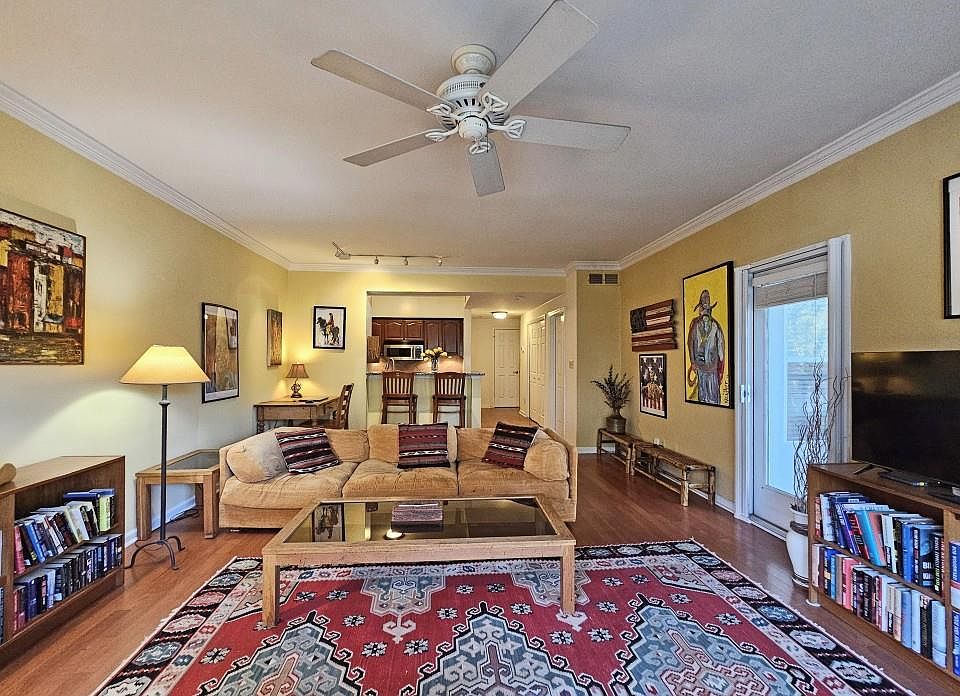 MUST SEE! This updated one bedroom in the RIVER WEST'S private GATED "Resort Lifestyle" community. You'll live in the sought after Buckhead/Vinings area with everything at your fingertips. LOCATION, LOCATION, LOCATION! This one bedroom is a RARE find! It's the largest one bedroom flat. There are only 5 units with this floor plan, so they are rarely available. Enjoy an open plan with abundant natural light, rare 10' ceiling, crown molding, and wood floors. The welcoming foyer leads to a desirable open kitchen with sought after breakfast bar, stainless appliances, cherry cabinetry, granite countertops, and tiled backsplash. The large cheery family room has a wall of windows which overlook a peaceful wooded area. Everyone will love this room and the private balcony off the family room. The generous bedroom has a huge walk-in closet. There's a large tile bath with separate vanity area, cherry cabinetry, granite countertops, and a huge sought after walk-in shower. The washer/dryer remain. There is fully secured/covered parking in the garage of the building 1 assigned space. ENJOY UNSURPASSED AMENITIES IN RIVER WEST: 2 sparkling pools, 24/7 fitness center conveniently located on the mid level of your building, 4 grill spots each with its own ambiance, and a fenced and wooded dog walk which is a treat for city dogs. The clubhouse includes the management office, gourmet kitchen, free business center for residents. You're moments from Truist Park/The Battery/Cobb Energy Center/Chattahoochee National Park/great shopping/restaurants/ entertainment.