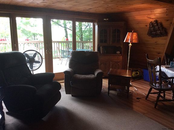 A real Adirondack feel with this 3 bedrm, 2.5 bath A frame cottage on lovely wooded .5 acres. Great room- living, dining and country kitchen. Relax on the spacious deck overlooking the lake. 100' of lakefrontage with level area for picnic table and campfire.