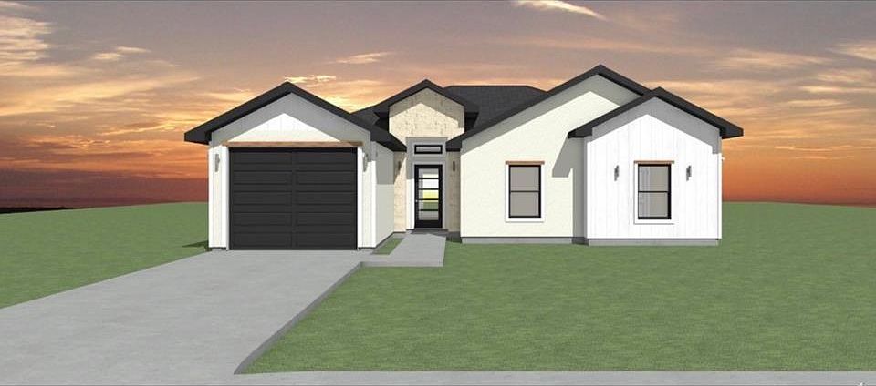 Step into luxury with this newly constructed 3-bedroom, 2-bath home, perfectly blending modern style with functional living. The striking exterior, featuring clean white siding and black accents, gives a fresh take on the modern farmhouse aesthetic. Inside, the open-concept living area boasts elegant decorative ceilings and seamless tile flooring throughout. The kitchen is a chef's delight with quartz countertops, custom cabinetry, a large working island, and a walk-in pantry. The smart split-bedroom layout places the expansive main bedroom retreat at the back, complete with a beautiful ensuite and two generous walk-in closets. For ultimate convenience, the plan includes a dedicated laundry room and a versatile mudroom/entry area just off the 1-car garage. Enjoy the Texas evenings on your large Rear Porch (11'4" x 9'8"). Located in a desirable San Juan area with easy access to the expressway and local amenities. Don't miss the opportunity to make this your dream home!