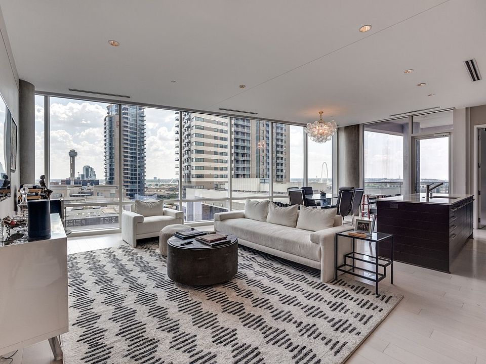 DISCOVER UPSCALE URBAN LIVING IN THIS ELEGANT DOWNTOWN DALLAS CONDO, WHERE CONTEMPORARY DESIGN MEETS REFINED COMFORT. SOARING WINDOWS FILL THE SPACE WITH NATURAL LIGHT. THIS HOME OFFERS PRIVATE SPLIT BEDROOMS WITH PRIVATE BATHS, AN OPEN FLOOR PLAN FEATURING AN UPSCALE LIVING AREA, A GOURMET KITCHEN, AND A LARGE, EXPANSIVE KITCHEN ISLAND WITH SEATING, PERFECT FOR BOTH ENTERTAINING AND QUIET EVENINGS AT HOME, ALL WITH A VIEW OF THE SKYLINE OF DALLAS. STEP ONTO YOUR PRIVATE BALCONY AND TAKE IN THE UNOBSTRUCTED SKYLINE VIEWS STRETCHING WEST TOWARD FORT WORTH—A BREATHTAKING BACKDROP FOR BOTH EVERYDAY LIVING AND ENTERTAINING. EXCLUSIVE AMENITIES—SUCH AS A RESORT-STYLE POOL, STATE-OF-THE-ART FITNESS CENTER, AND 24-HOUR CONCIERGE—OFFER CONVENIENCE AND SOPHISTICATION IN THE CENTER OF THE CITY, ALL WITHIN WALKING DISTANCE TO PREMIER DINING, SHOPPING, AND ENTERTAINMENT. BUYER TO VERIFY SQAURE FOOTAGE AND DIMENSIONS.SQUARE FOOTAGE AND ROOM DIMENSIONS ARE BASED ON THE ORIGINAL BUILDER’S BROCHURE FLOOR PLAN
