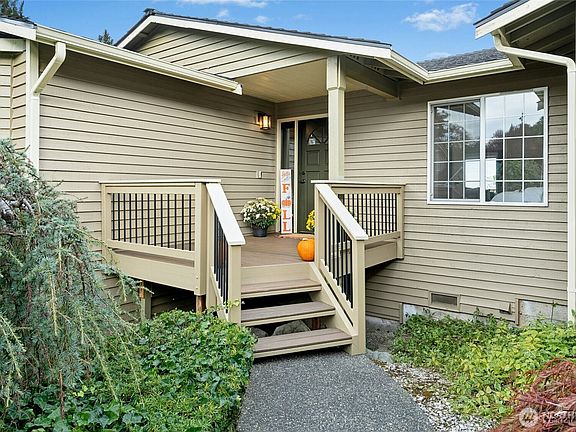Tucked away in a peaceful cul-de-sac, this beautifully updated single-level home offers breathtaking views and a serene setting. Thoughtfully designed for comfort and style, enjoy the spacious kitchen equipped with new stainless steel appliances (stove, microwave, dishwasher), and two generous living areas, each with a cozy gas fireplace. The luxurious primary suite features a spa-like bath with heated floors, multiple jet/rain showerheads, soaking tub, and TOTO bidet. Step onto the expansive 600 sq ft Trex deck—perfect for relaxing or entertaining. Additional upgrades include a 2021 Presidential TL roof, updated main bath, oversized 680 sq ft garage, and pre-inspected systems for peace of mind. Move-in ready—your personal retreat awaits!