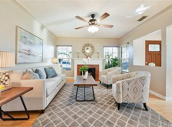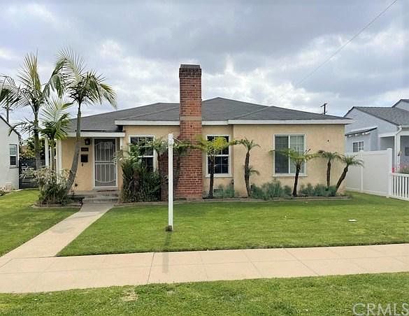 Charming home on a nice wide street in a great part of Gardena. Current owner took down a wall to make 2 large bedrooms, which could easily put back to a 3 bedroom. Kitchen has granite counters and stainless appliances, new stove, stackable washer & dryer. Bamboo flooring in entry, dining area and living room with wood burning fireplace. Dual pane windows throughout. Main bathroom remodeled in 2018. Large lot allows for a future addition and the property is a good candidate for an ADU. 2 Car garage, large rolling gate for access off of alley for RV or boat access. Yard with fruit trees and covered patio.