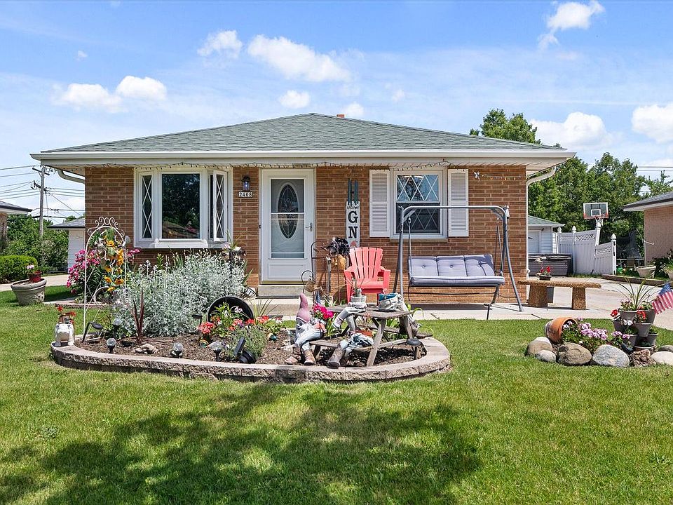 Charming brick ranch that effortlessly combines low maintenance with timeless appeal! Step inside to find gleaming wood floors that grace the living room, main bedroom, and hallway, adding warmth and character to your living space. The heart of this home is its inviting 3-season room, perfect for enjoying morning coffee or evening relaxation. Outside, the beautiful curb appeal is accentuated by lovely perennial plantings, creating a vibrant and welcoming entrance. The private, fenced backyard is an oasis of tranquility, ideal for gatherings, gardening, or simply soaking in the sun. Practical features include a concrete driveway leading to a spacious 2-car garage with additional storage shed, ensuring plenty of room for all your needs. Just blocks from schools!