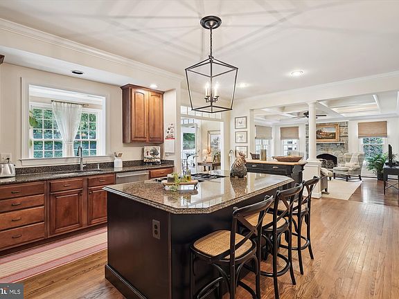 Custom Wetherburne Home located in a private enclave of luxury properties on 4 acres in Aldie. Town and Country living at its best! So close to all of Loudoun's eastern conveniences, yet minutes to Middleburg's horse and wine countryside. Major curb appeal with a grand stone entrance, brick/stone walkways, porch, extensive hardscaping, lush landscaping, and detached Carriage House. Inside, the open floor plan exudes classic elegance with a turned staircase flanked by a home office and living/dining rooms that lead to a gorgeous conservatory addition featuring a with vaulted coffered ceiling and stunning stained glass light fixture. The gourmet kitchen has top of the line appliances and opens to the light filled sunroom addition and step-down family room which is accented by its stone fireplace and coffered ceiling. Upstairs, the primary suite does not disappoint with its spacious sitting area, double walk-in closets and spa like bath with vaulted ceiling, double sinks and soaking tub. There are three additional bedrooms upstairs, one with an extra large private bath, and the other two connected by a Jack & Jill bath, all including ample closet space. The basement is the perfect escape with a large recreation room, exercise room, tiled sunroom, and den with attached bath and plenty of unfinished storage space. Enjoy the outdoors on one of the home's several decks, the screened porch or while relaxing in the hot tub! In addition, the yard has an underground sprinkler system and Invisible Fence. Seller has recently replaced most high ticket items to include: new roof (2020), AC and furnace units (2022/2023), hot water heater (2022),exterior painting (2022), and built-in refrigerator (2023). Pride of ownership shines through with this home!