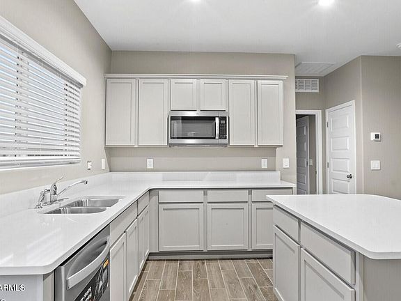 Located in a prime location near the Watson shopping corridor and beautiful Sundance Park. Designed with comfort and convenience in mind, the home features stylish tile plank flooring, upgraded cabinetry, quartz countertops, and ceiling fans throughout. The kitchen is fully equipped with stainless steel appliances—including an air fryer—tiled backsplash, cookware, and dishware, making it truly move-in ready. Perfect for traveling nurses or individuals relocating to the area, the home also includes towels, starter toiletries, and cleaning supplies. A large smart TV and high-speed WiFi are provided for your entertainment and connectivity needs. Step outside to a fully fenced and landscaped backyard with a covered, furnished patio ideal for relaxing or entertaining. Both charcoal and propane grills are included for outdoor cooking. The home also comes with a one-stall garage and plenty of driveway and street parking. This home offers a turnkey, both comfortable and stress-free. Great for a primary home or an investment. Multi generational living. Both main house and guest house rented out! MUST SEE!