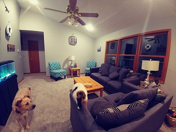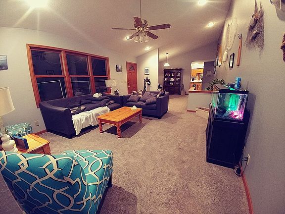 3 bedroom, 3 bath, kitchen, dining, family room, living room, 2 car attached garage and 1 car detached garage. Firepit