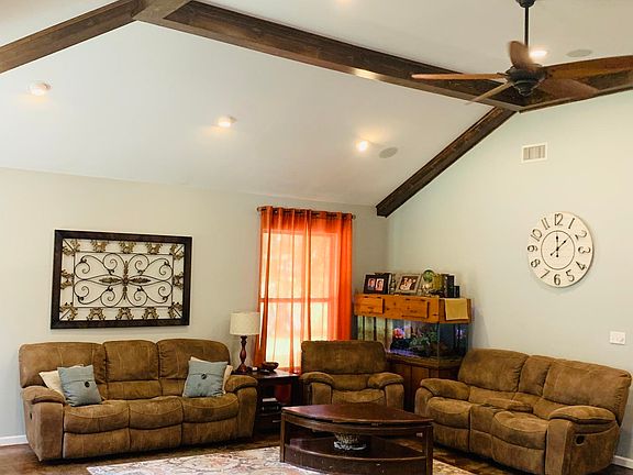 ---WOW--- Beautiful 3 bedroom 2 bath home situated on 2 acres of property with a stocked pond. This home has fresh paint throughout the inside and beautiful stained beams on ceiling. Home has a double car garage attached to the house thats heated and cooled and could be converted into more living area. Home also has a second double car garage thats attached to the home with a custom brick wall that has outdoor lighting. Agent is related to seller.