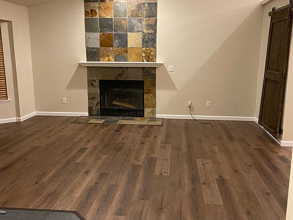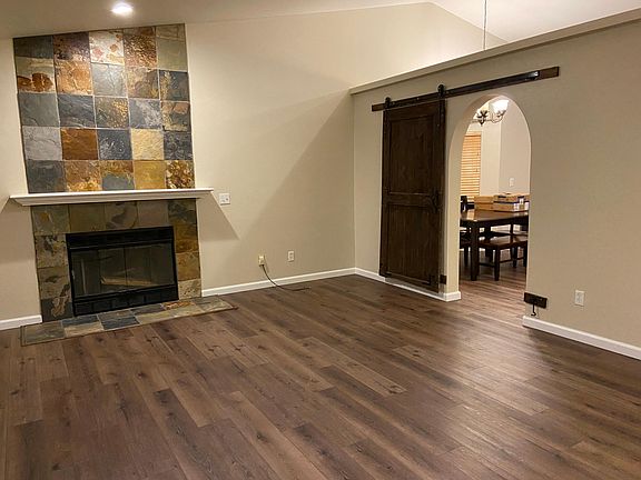 Slate fireplaceLarge deckPrivacy treesVaulted ceilingsCarpet in bedrooms