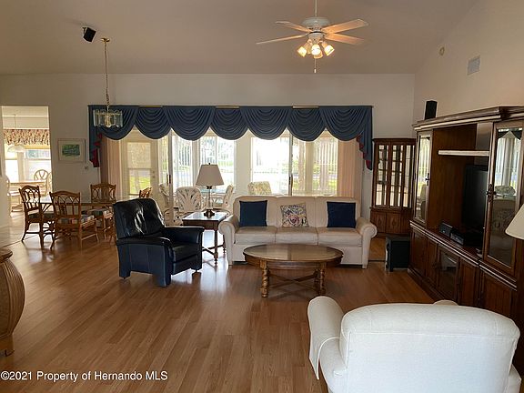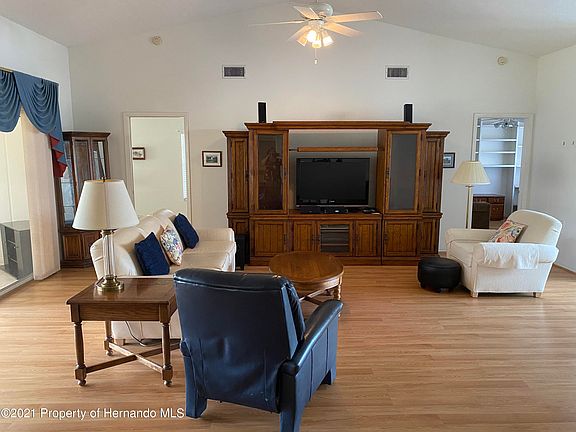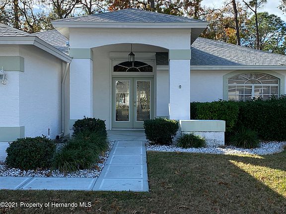 Active Under Contract. Come see what this Tamarack modeled home in the prestigious community of Timber Pines has to offer. This 3 BR home features vaulted ceilings and open floor plan. Kitchen is tiled and offers spacious eat-in seating area as well as stainless steel appliances with 2019 dishwasher. Air Conditioning was replaced in 2017 and new roof was just installed in June of 2020. Water heater replaced in 2014. Living Room and Dining Room has laminate flooring. Master BR has 2 walk-in closets and Master BA has 2 sinks. BR2 has walk in closet and built in shelving (BR is currently being used as a den/office.) BR3 is spacious with large wall closet. Guest BA is tiled and has a tub/shower combo. Laundry Room is spacious with tub sink and cabinets. Your Lanai or Florida Room is glass enclosed. Home has a security alarm which can be reactivated, if you choose. It also has hurricane shutters for further protection. Your new home will come with a 1 year home warranty of your choosing, valued at $550 and all furnishings as well as golf cart with newer batteries can be yours with a full price offer. There is a small patio outside the Lanai. Garage has screen doors. One of the best things about this home is that it features an additional garage space to house your golf cart. This home is located near the new P.A.R.C. (Pickle Ball and Recreation Center). With limited inventory, this 3/2/2.5 home won't last long. Call today and start enjoying all the amazing amenities that Timber Pines has to offer.