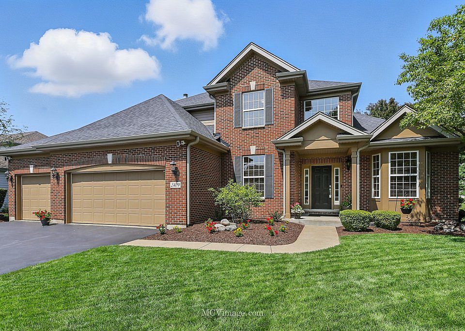 Exceptionally well-maintained and beautifully appointed, this home in highly desirable Brookside offers a thoughtful custom floor plan with inviting spaces inside and out. The welcoming foyer opens to a formal dining room with a charming bay window and a versatile main floor office or fifth bedroom-ideal for remote work or quiet retreat. The spacious kitchen features custom cabinetry, a center island, stainless steel appliances, and a bright breakfast area that flows seamlessly into the family room, where a cozy brick fireplace anchors the space. Large windows throughout the main level bathe the home in natural light, creating a warm and airy atmosphere. Upstairs, the master suite offers a spa-like bathroom with a whirlpool tub, separate shower, dual vanity, and a generous walk-in closet. Three additional generously sized bedrooms provide ample space and storage, all served by a well-appointed hall bath with a deep soaking tub. The full basement offers endless potential and awaits your personal finishing touches. A heated three-car garage adds comfort and convenience year-round. Step outside to a professionally landscaped yard featuring a sprinkler system, 17 x 25 patio, knee walls, and a built-in grill-perfect for entertaining and enjoying outdoor living. Ideally located just minutes from shopping, dining, and major expressways, this home offers the perfect blend of space, style, and location. LIVE & ENJOY!