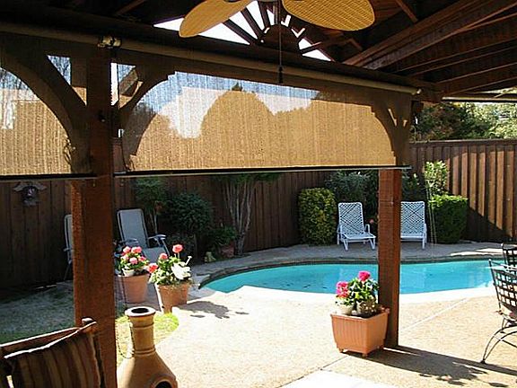Delightfully charming home with outstanding pool and patio area. Lovely Plantation shutters throughout, vaulted open living-dining area with fireplace & large wet bar. Large & exceptionally designed Cedar covered patio with bamboo fans joined by graceful pool & board on board fence. It is a secluded world of its own. This home easily transitions to contemporary or traditional. Wonderfully close to great schools, parks, dining, & shopping.