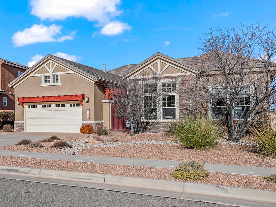 Welcome come to 2409 Desert View NE. This stunning Mariposa home offers a sanctuary for those seeking the best of high desert living. Perched on an exclusive lot, the home features amenities and upgrades throughout. Features include: high ceilings, a gourmet kitchen with top of the line cabinets, tile floors, abundant windows and natural light throughout. The kitchen area steps out to a covered patio with expansive views of the Ortiz & Sandia Mountains. Other features include a finished/oversized garage, entry courtyard, ideal office/guest room, high energy efficiency rating, large lot backing on open space & much more!