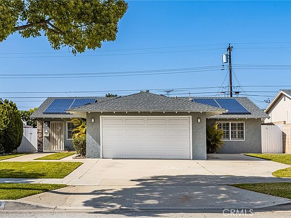 Stunning 3 bedroom 1 3/4 bathroom California ranch style home in a quiet desirable Orange/Villa Park neighborhood. As you enter this home you will notice neutral colored painted walls and laminated flooring that will fit any home decor. The floor plan comes with a gorgeous galley kitchen with large granite countertop space and rich colored cabinets, a built-in microwave, and aesthetically pleasing curved eat-in counter area. The dining room has recessed lighting and an open space to accommodate a china cabinet. Large living room has a cozy gas fireplace with space to entertain with a pool table or gaming play area. Bedrooms are nicely sized with the primary bedroom having a large extra depth closet. House is equipped with a whole house fan that comes in handy in the summer by pulling the hot air from the house and into the attic, this along with solar panels will potentially aid in saving new owner in cooling home and rising electrical costs. Fully covered lit backyard patio area is the perfect place to relax in the evenings, while beautifully landscape surroundings adorn the backyard providing a tranquil place to relax in a hammock in the afternoon or enjoy a hot cup of coffee in the mornings. The spacious backyard is also equipped with a dog run on the side of the house, an enclosed secured child play area for the little ones to have their outdoor toys or playhouse, or even a sectioned off garden with above ground planter boxes. There are so many options for this space! The two car garage has storage cabinets, a large work table and ample space to accommodate a large washer/dryer. The front of the home has an additional parking space on the side of the garage which is perfect for parking of a small to medium RV with hookup, a boat, or a third vehicle like a work truck. Do not delay with a desirable Villa Park school district this family friendly home is a gem and will not last long!
